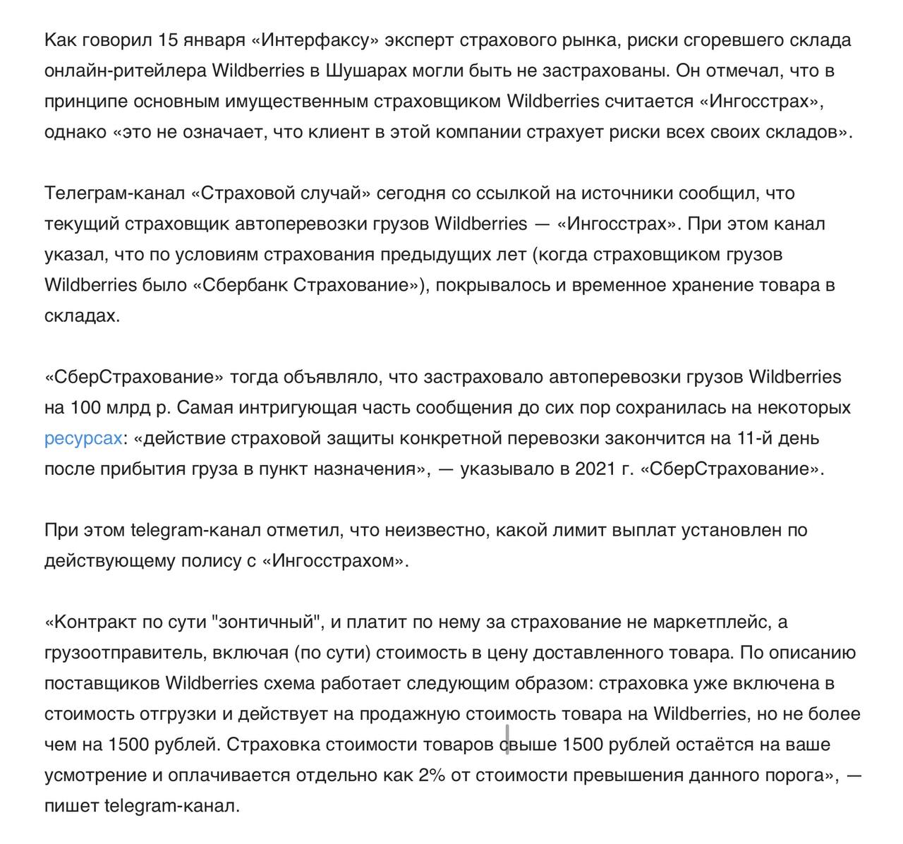 🤓 Опа! Коллеги со страхового рынка разбираются в вопросе страхования товаров на складе Wildberries.