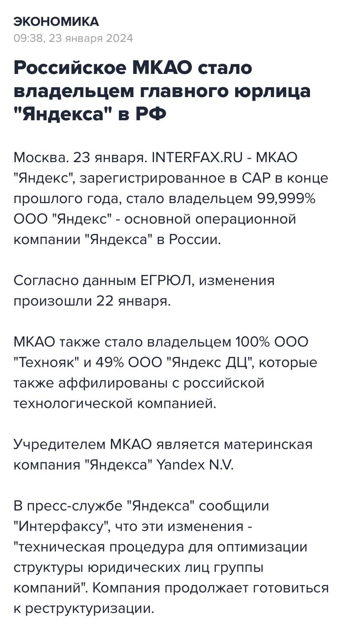 🤓 Не случайно нас вчера так на тему Яндекса прорвало. Некоторым образом, чуйка.