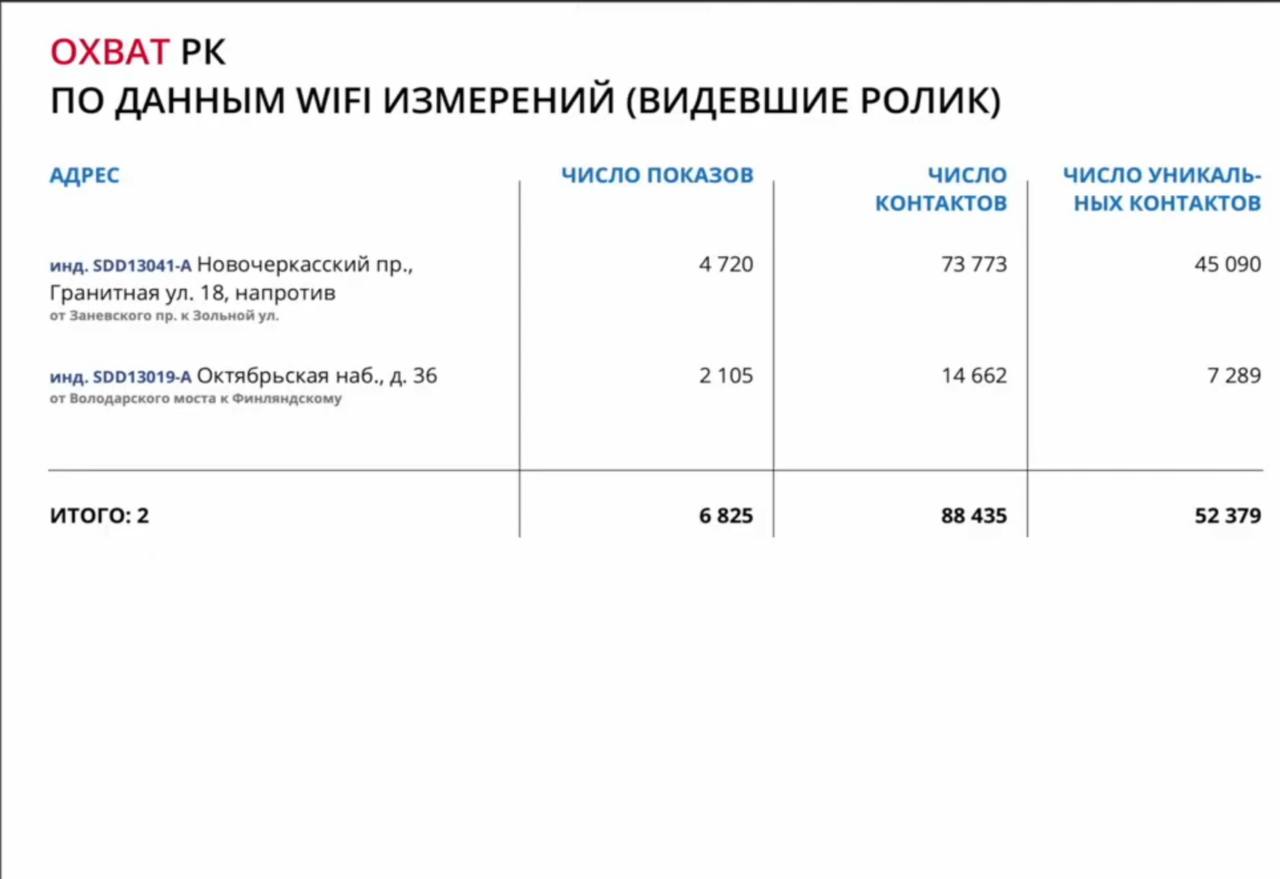Собранные данные позволяют получить приблизительный охват рекламы, рассчитать основные медиапоказатели и оценить результативность рекламной кампании.»