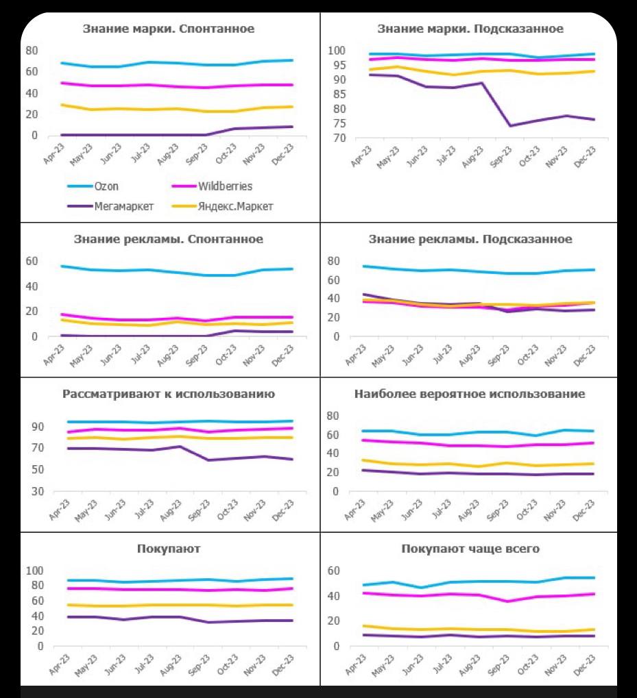 🤓 Сто триллионов бюджетов слитых на ТВ во второй половине прошлого года — тоже существенной известности Мегамаркету не прибавили. Плюс 8% к знанию и ничего в других метриках, как посчитали коллеги.
