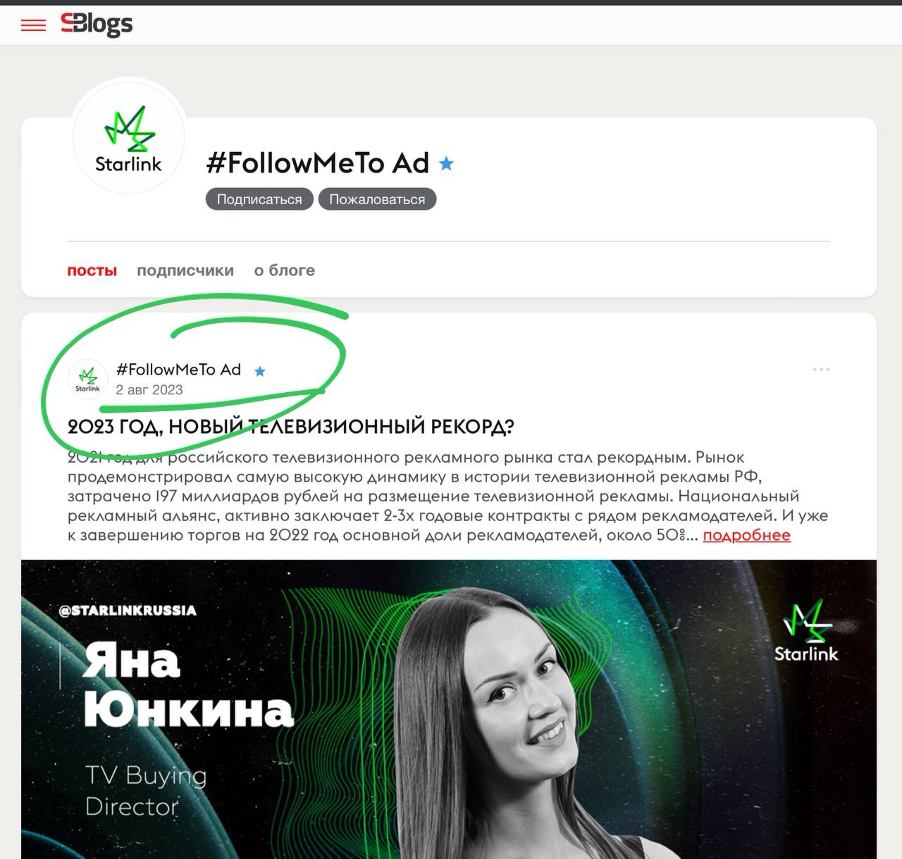 Новые блоги: Старлинк, с последней публикацией от 2 августа.