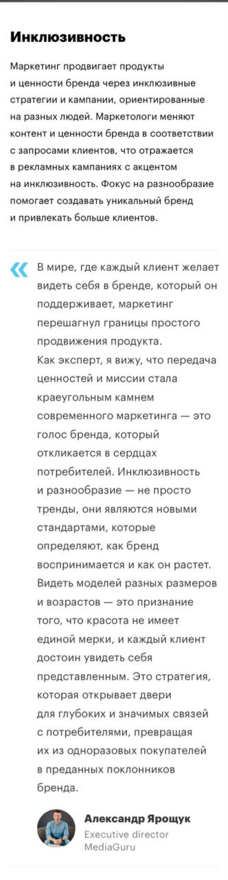 🤓 Слышал звон, но не проверил дату. У нас тут раздел «инклюзивность» в обзоре «Маркетинговые тренды 2024: какие инструменты и технологии станут ключевыми».