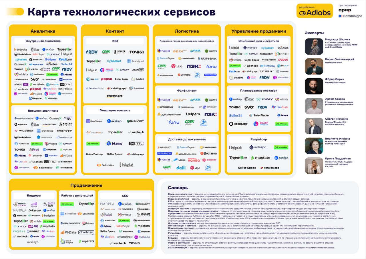🤓 Карту технологических сервисов, которую собрал Adlabs вместе с АРИР и DataInsight, можно описать всего парой слов — как же у нас дохрена всего наросло (пытается) вокруг екома.