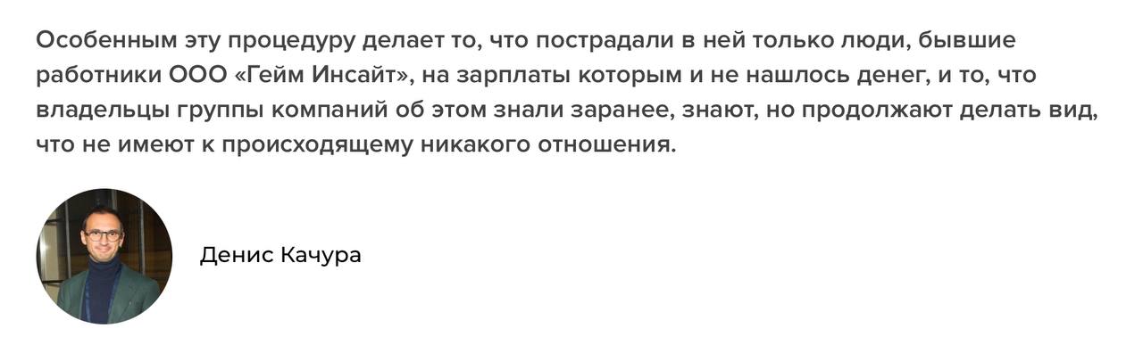 🤓 Гейм Инсайт, некогда крупнейший разработчик мобильных игр легендарных Алисы Чумаченко и Игоря Мацанюнка банкротится настолько необычно, что на процесс обратили внимание профильные банкнотные порталы.