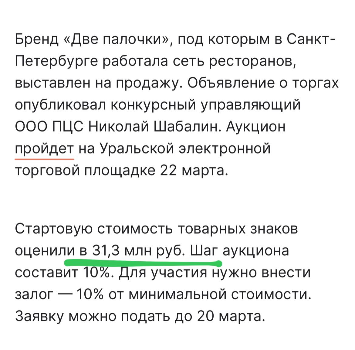 Продать отдельно товарный знак разорившейся сети суши на аукционе.