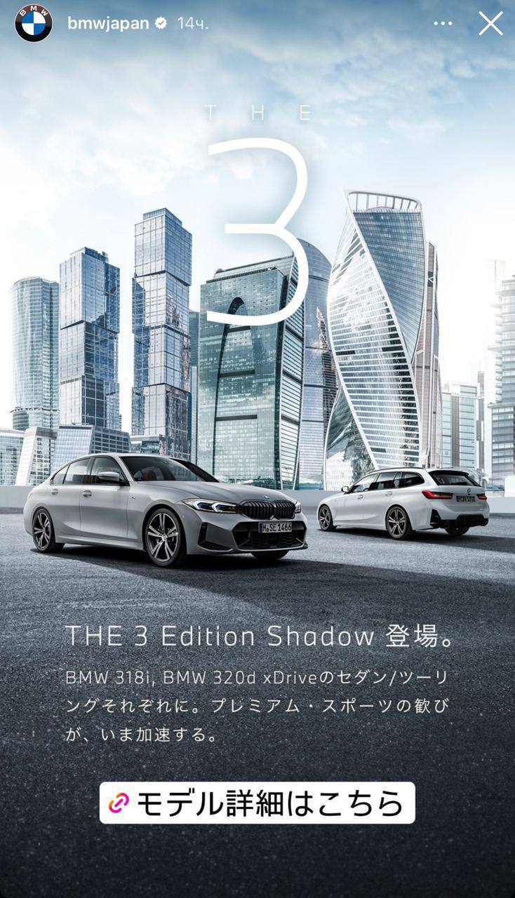 BMW Джапан рекламирует новые модели на фоне башен Москвы Сити.