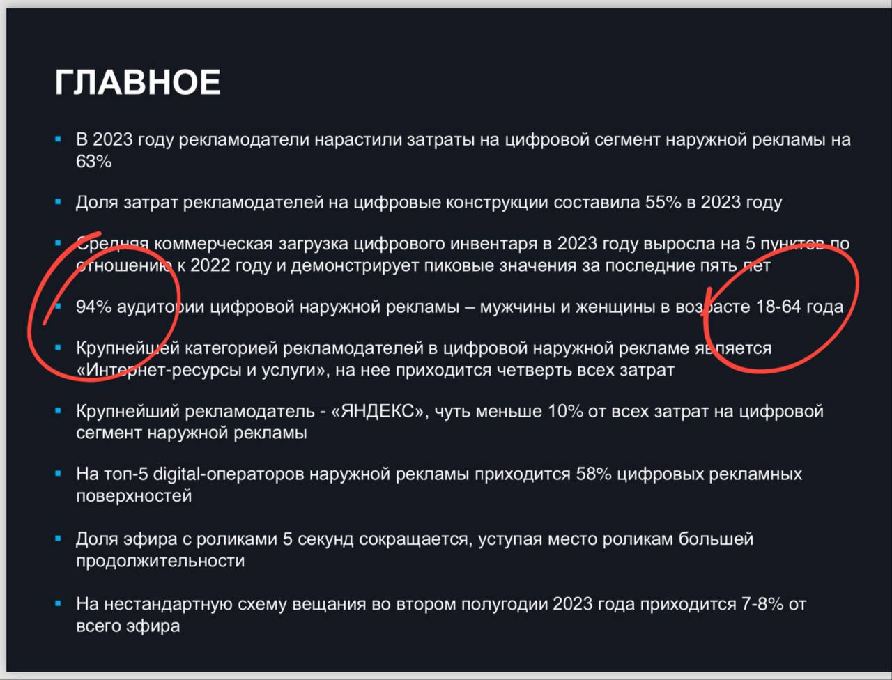 «94% аудитории цифровой наружки — мужчины и женщины в возрасте 18-64 года».