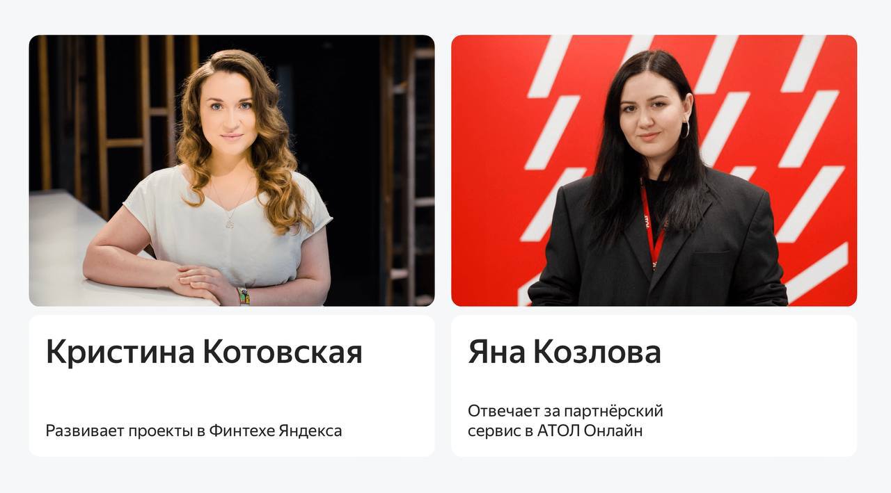 28 февраля Кристина Котовская (руководитель службы Финтеха Яндекса) и Яна Козлова (старший менеджер по развитию партнеров АТОЛ Онлайн) предстанут перед зрителями на вебинаре с названием 📺«Как увеличить продажи на 34%?».