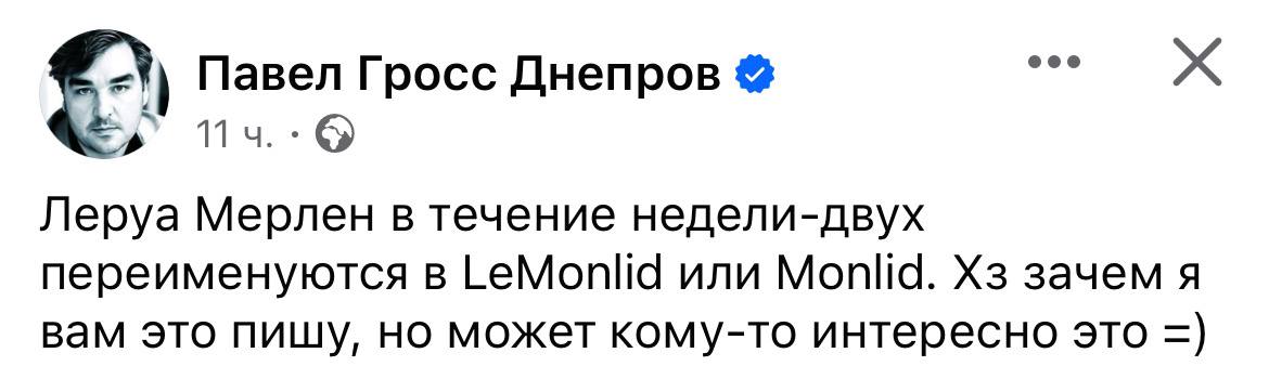 🤓 Был Леруа Мерлен — стал Монлид (или Ле Монлид)… Из надежных источников👆🏻.