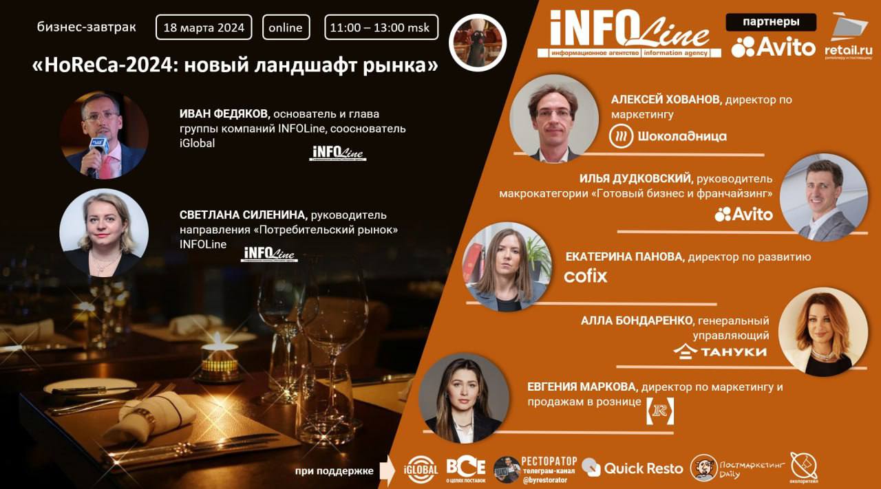🍽 «HoReCa-2024: новый ландшафт рынка» – тема предстоящего мероприятия INFOLine. Встреча с представителями ведущих компаний индустрии общепита состоится 18 марта и пройдет в online-формате.