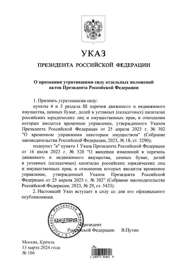 ⚡️ И еще одна невозможность случилась. Президент отменил передачу активов Danone во временное управление Росимущества. Документ опубликован на портале правовой информации.
