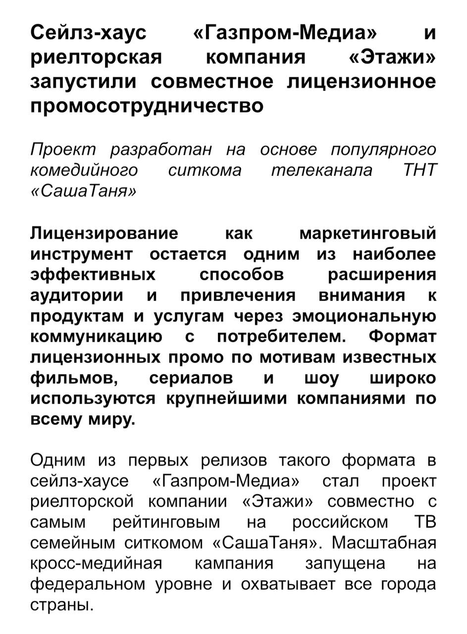 🤔 Если продраться сквозь ребус пресс-релиза, похоже, что Саша и Таня становятся риэлторами где-то на Урале?