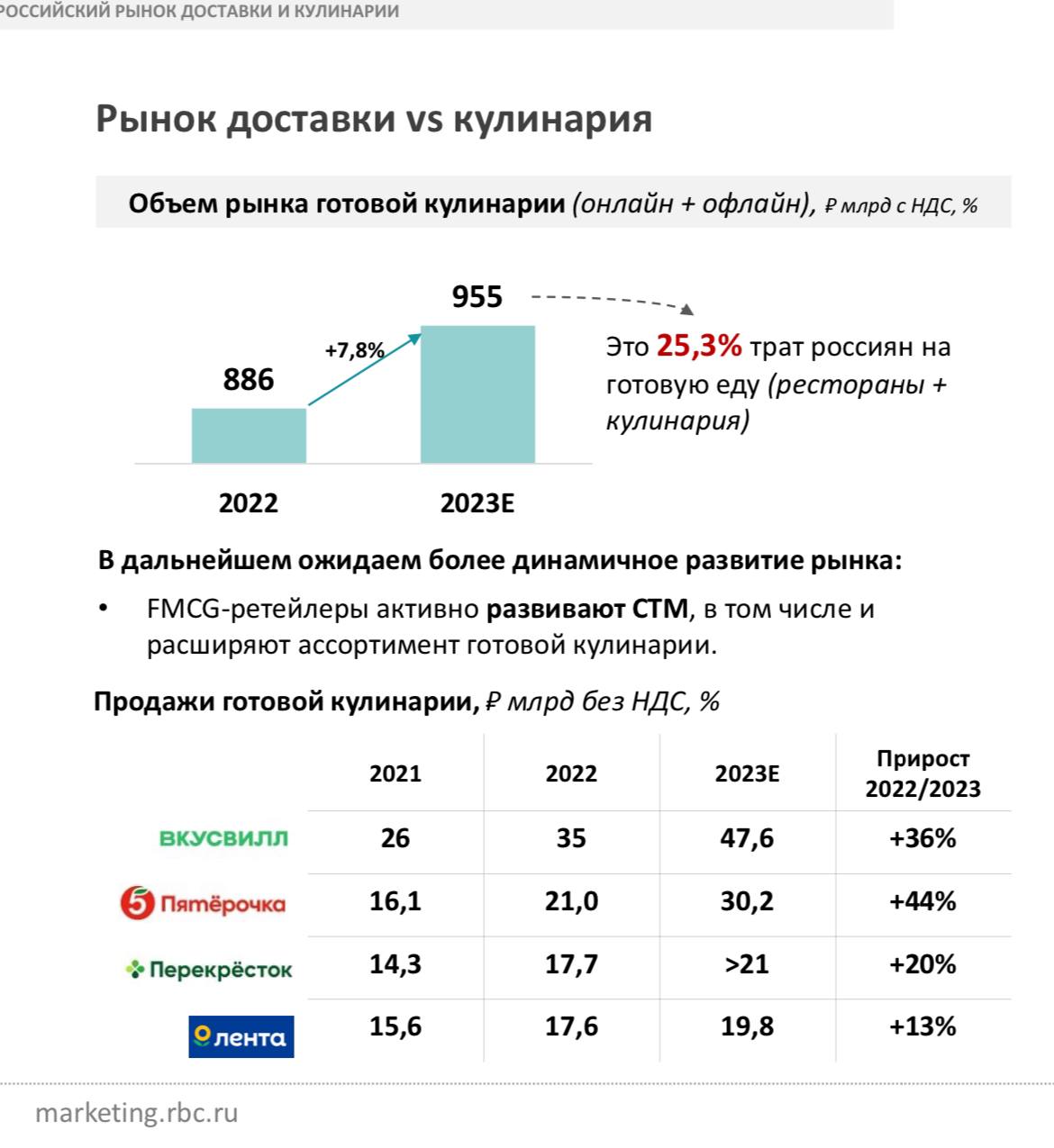 — Российский рынок кулинарии — составляет почти триллион рублей.