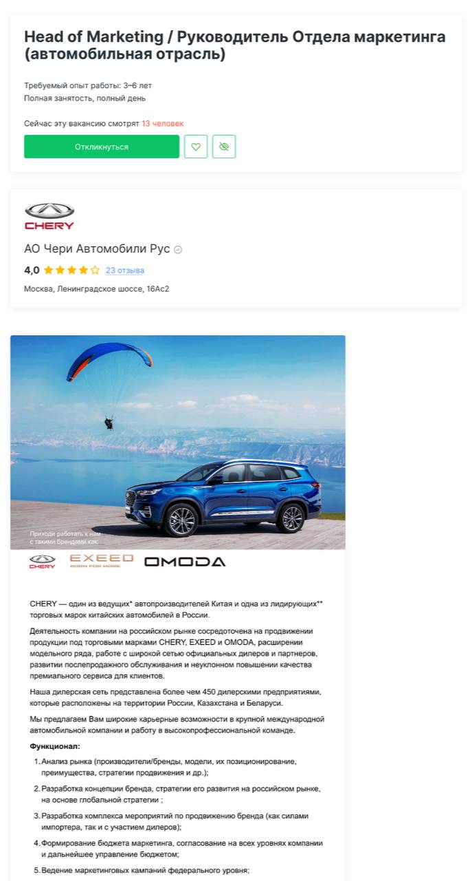 🤓 Между тем, Chery продолжает искать нового директора по маркетингу.