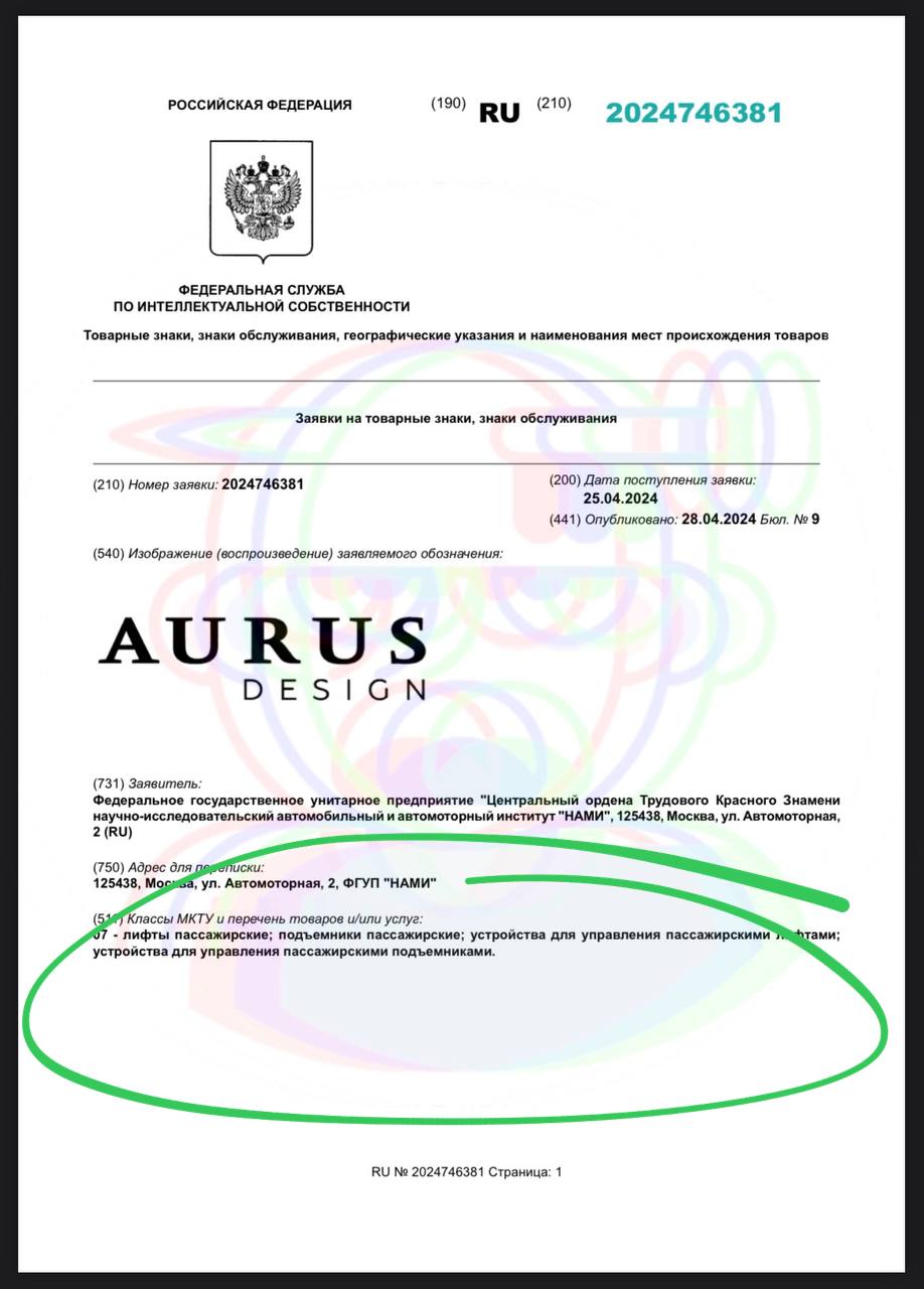 Перед майскими российский автопроизводитель подал на регистрацию товарный знак «Аурус дизайн» в категории лифтостроения. В этой области он будет работать совместно с отечественным производителем Метеор Лифт.