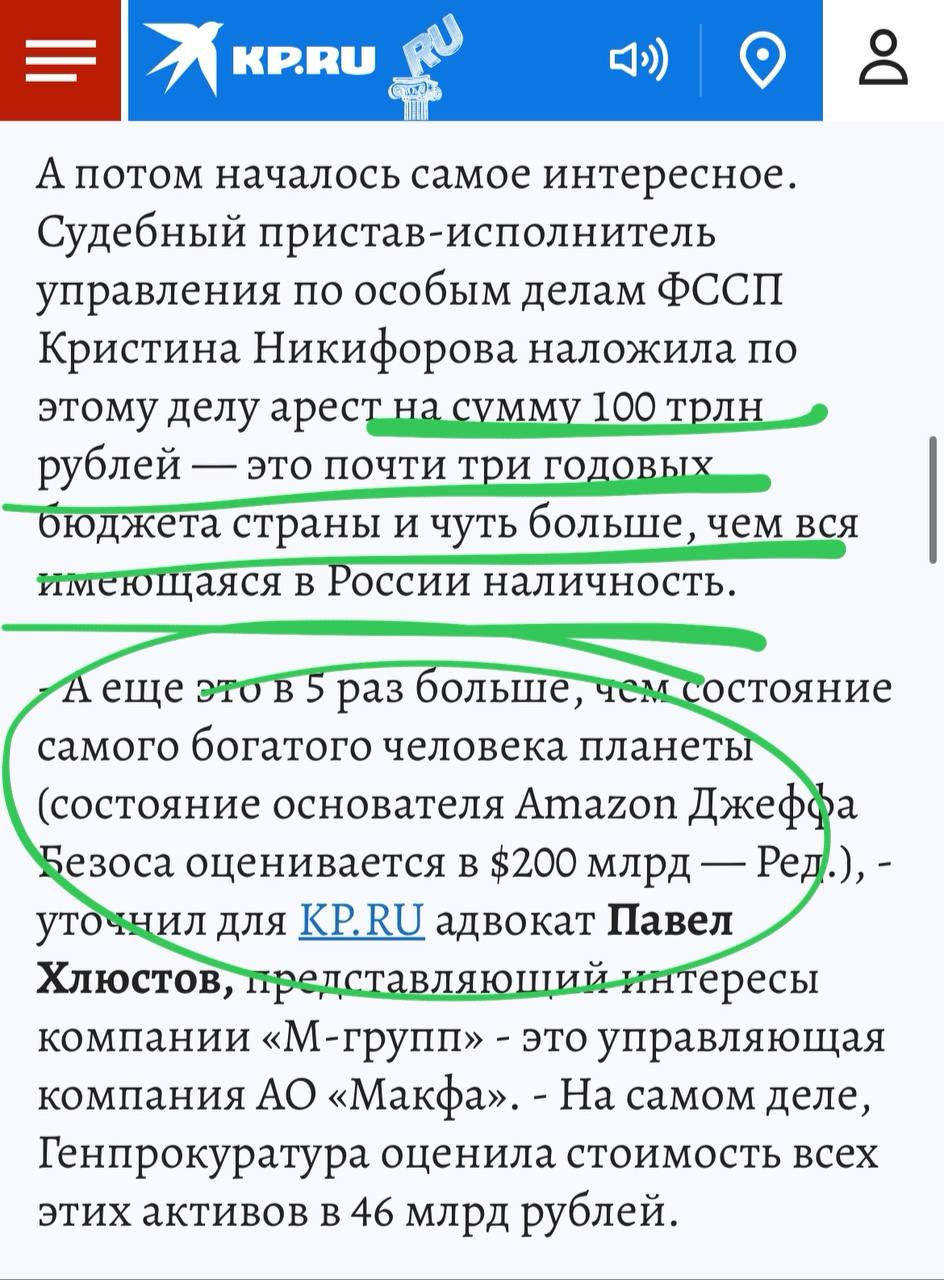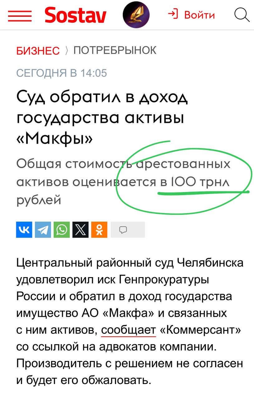 Зачем тиражировать сегодня слух про «100 триллионов», арестованных у Макфы, когда его давно все опровергли — от РИА до Комсомольской правды?