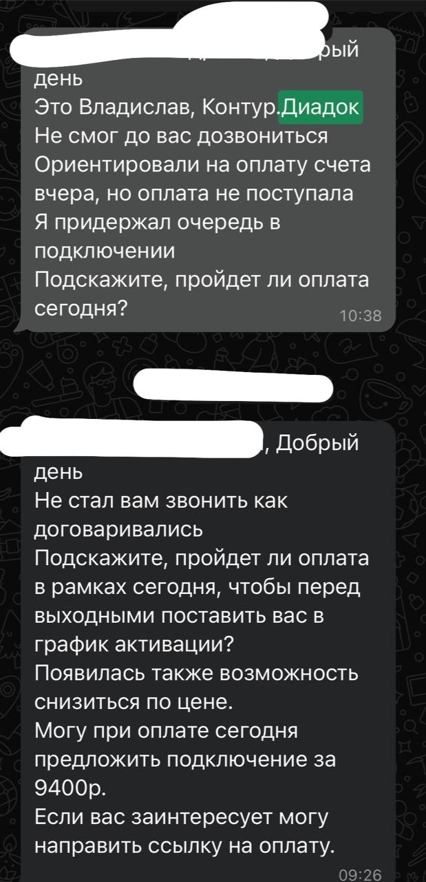 Есть ощущение, кстати, что Контур реально аутсорсит продажи у коллекторского агентства. Интересно, сколько тысяч клиентов они оттолкнули таким нездоровым напором?