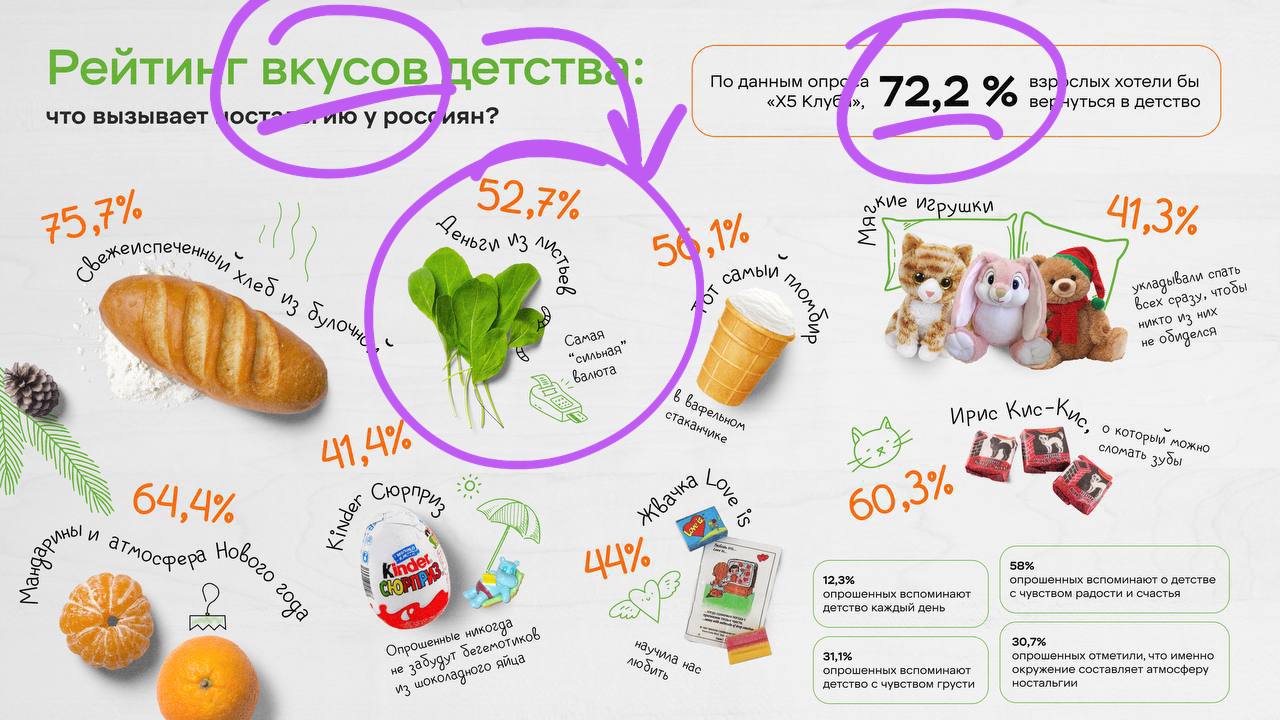 🤓 По данным Х5, 72,2% взрослых хотели бы вернуться в детство