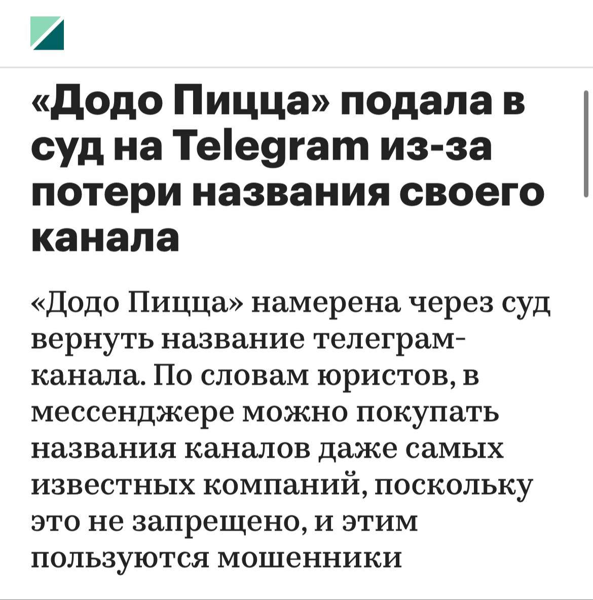 🤓 Додо пицца пытается бороться со сквоттингом имен брендов в Телеграм.