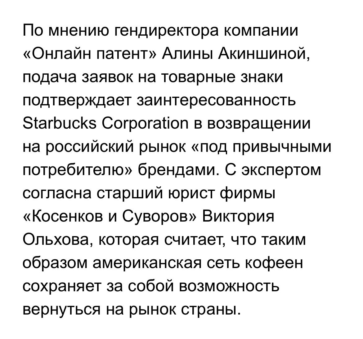 😂 Каналы и СМИ обнаружили у Вадима инфу о регистрации товарных знаков Старбакса и понеслось. Эксперты у них предположения делают…