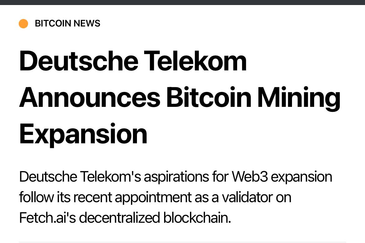 🤓 Deutsche Telekom, материнская компания T-Mobile, сообщила, что намерена начать майнинг биткойнов, расширяя свою текущую деятельность, связанную с криптовалютой.