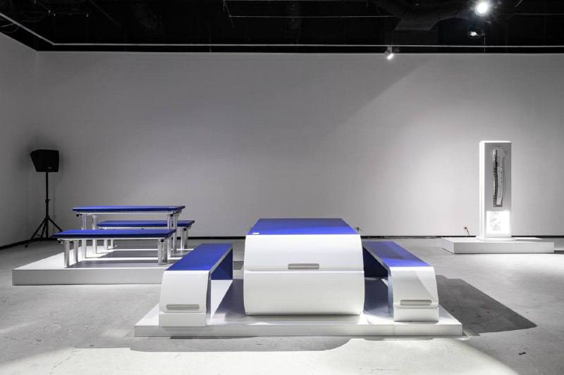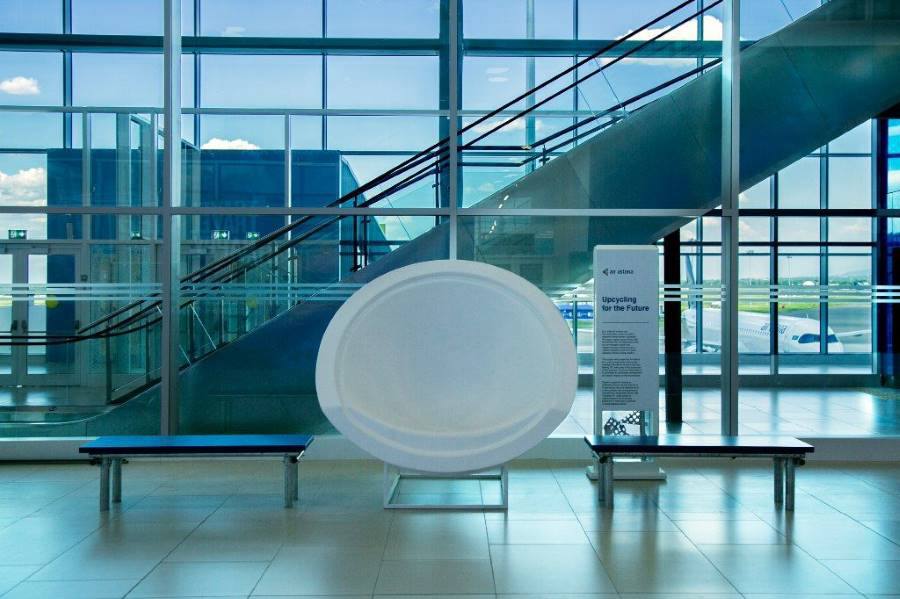 Предметы интерьера, созданные алматинскими художниками, установлены в зоне международных вылетов нового терминала аэропорта Алматы. При производстве мебели авторы использовали части фюзеляжа Airbus A321, а также конструкции внутреннего интерьера Boeing B767.