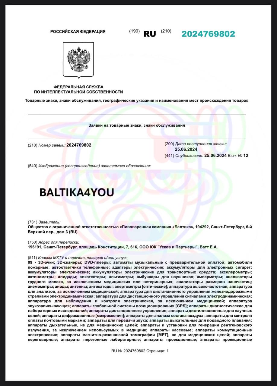 🤓 Мы думали, что после возвращения на родину компания Балтика будет создавать российские продукты… В вот нате — снова регистрируются товарные знаки на языке вероятного противника.