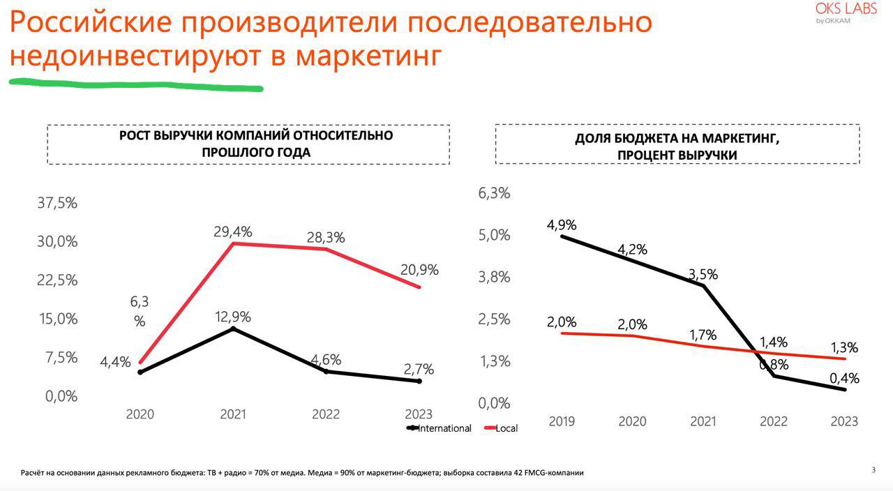 π€ ΠΡΠ»ΠΈ ΠΌΡ ΠΏΡΠ°Π²ΠΈΠ»ΡΠ½ΠΎ ΠΏΠΎΠ½ΠΈΠΌΠ°Π΅ΠΌ ΡΡΠΎΡ ΡΠ»Π°ΠΉΠ΄ β ΡΠΎΡΡΠΈΠΉΡΠΊΠΈΠ΅ ΠΏΡΠΎΠΈΠ·Π²ΠΎΠ΄ΠΈΡΠ΅Π»ΠΈ Π΄Π΅ΠΌΠΎΠ½ΡΡΡΠΈΡΡΡΡ Π»ΠΎΠ²ΠΊΠΎΠ΅ ΡΠ½ΠΈΠΆΠ΅Π½ΠΈΠ΅ Π΄ΠΎΠ»ΠΈ Π·Π°ΡΡΠ°Ρ Π½Π° ΠΌΠ°ΡΠΊΠ΅ΡΠΈΠ½Π³, ΠΏΡΠΈ Π½Π΅ΡΠΊΠ»ΠΎΠ½Π½ΠΎ ΡΠ°ΡΡΡΡΠ΅ΠΉ ΠΏΡΠΈΠ±ΡΠ»ΠΈ