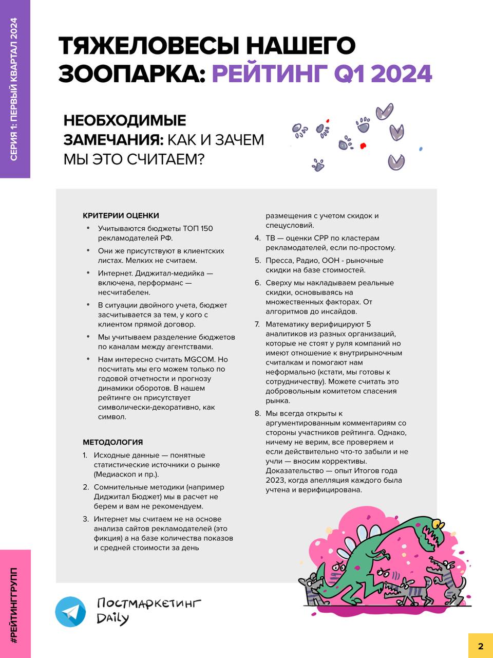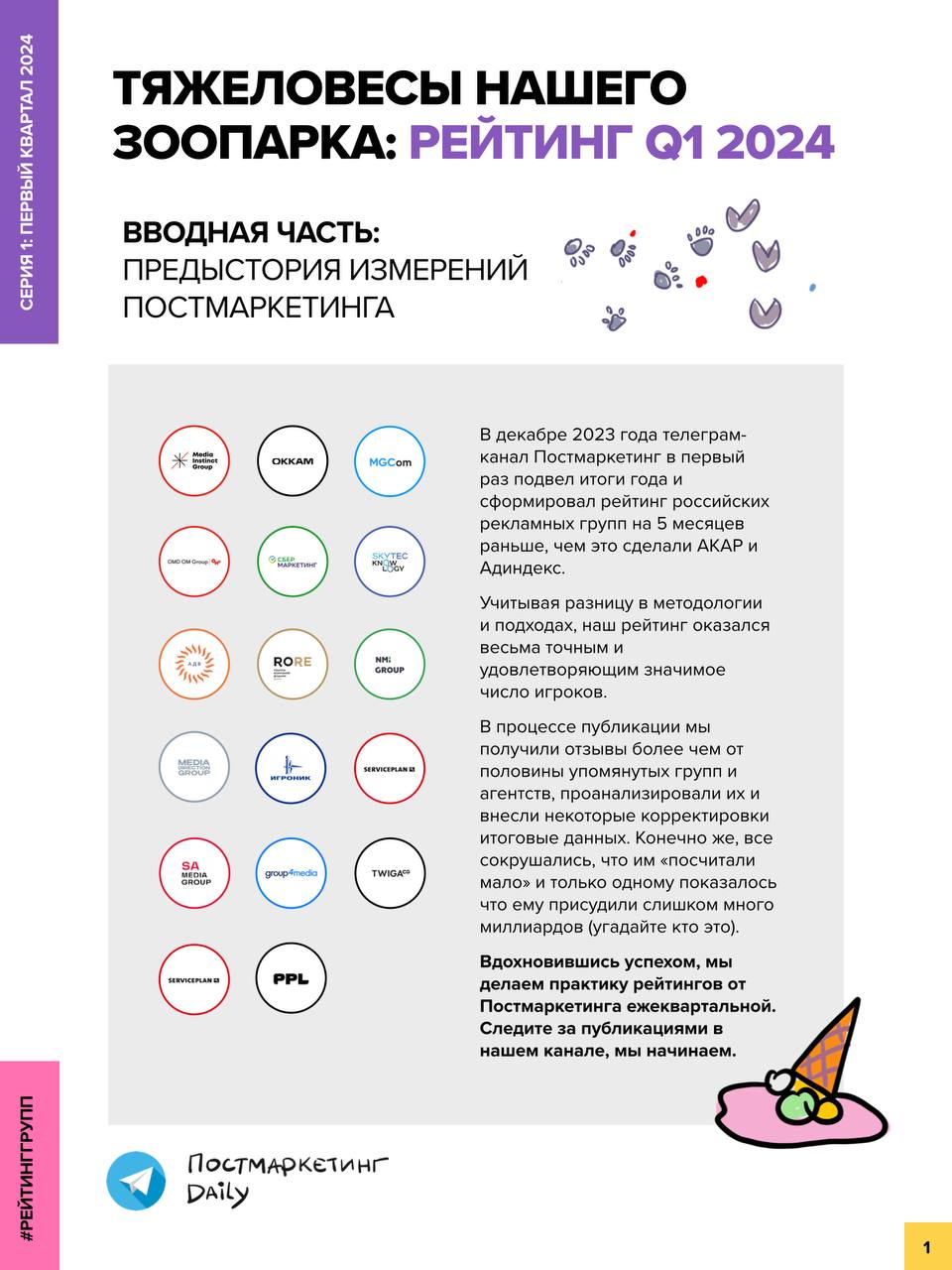 Мы решили повторить успех и сделать Рейтинг Постмаркетинга ежеквартальным. Сегодня мы начинаем анализ Q1 24 года, скоро представим полугодие.