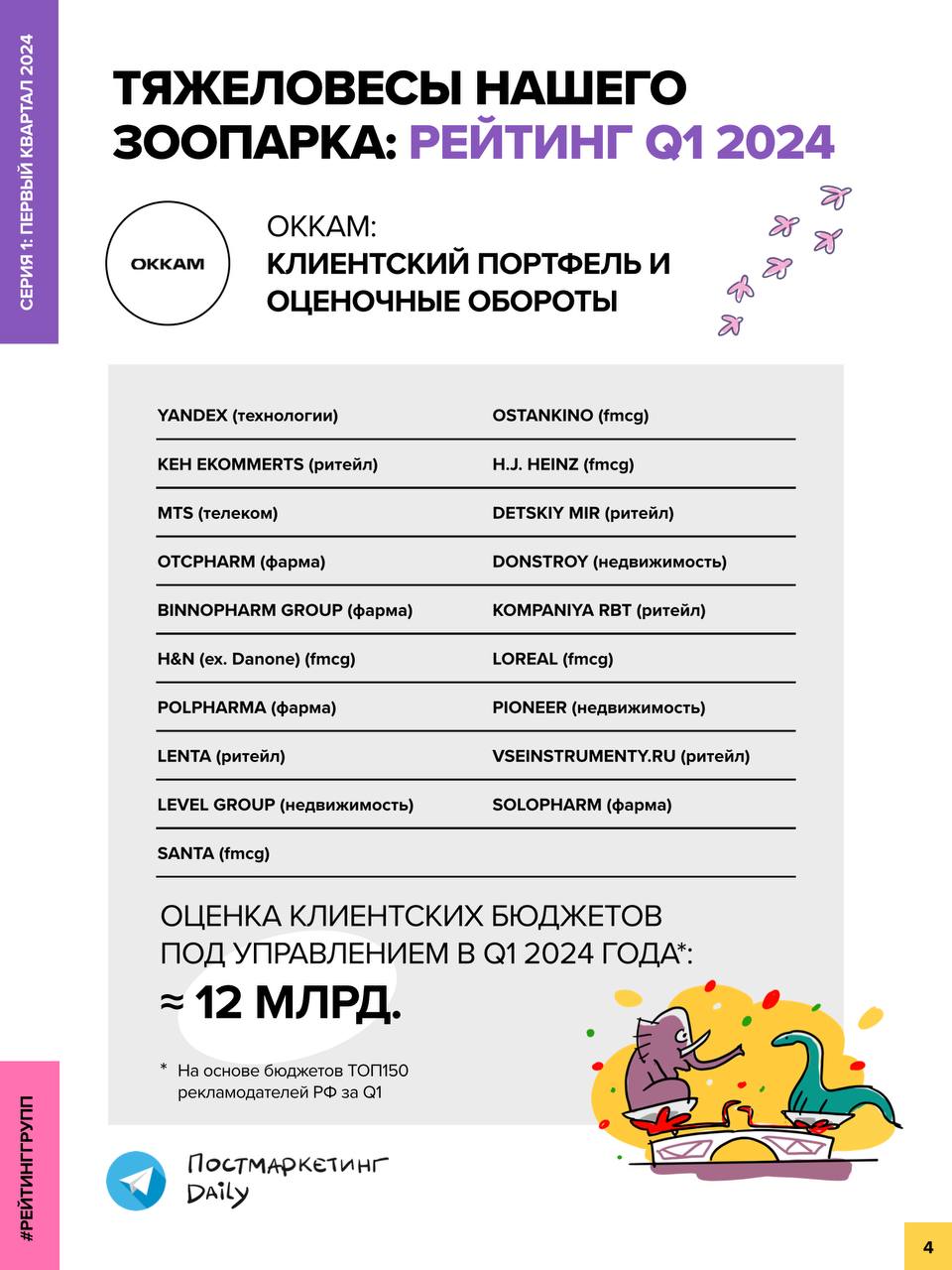 ⚡️ Ежеквартальный рейтинг оборотов рекламных групп на основе бюджетов ТОП150 рекламодателей РФ от Постмаркетинга. Начинаем — первый квартал 2024.