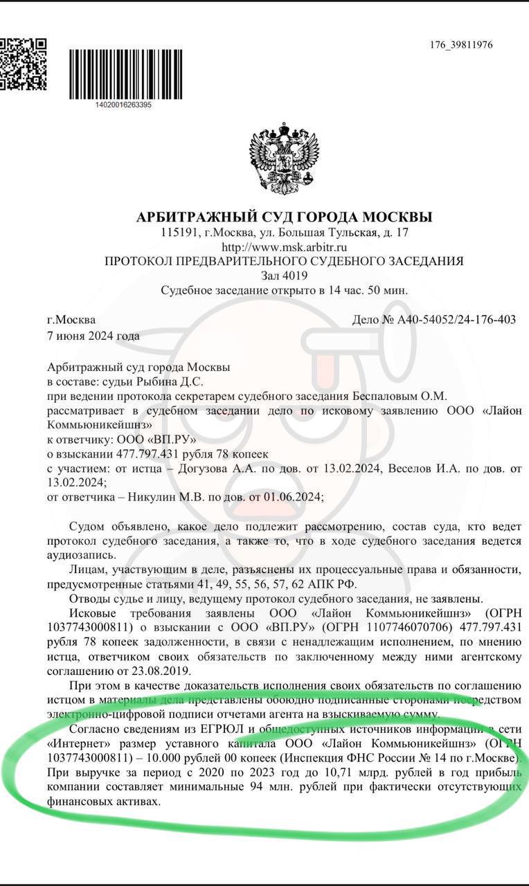 Родная речь своим юрлицом ООО «Лайон коммьюникейшнз» подало иск к юрлицу Айконтекста ООО «ВП.ру» на гигантскую сумму 477 797 431,78 руб. (почти полмиллиарда рублей❗️). Иск принят к рассмотрению 15 марта, сообщает Rusprofile.