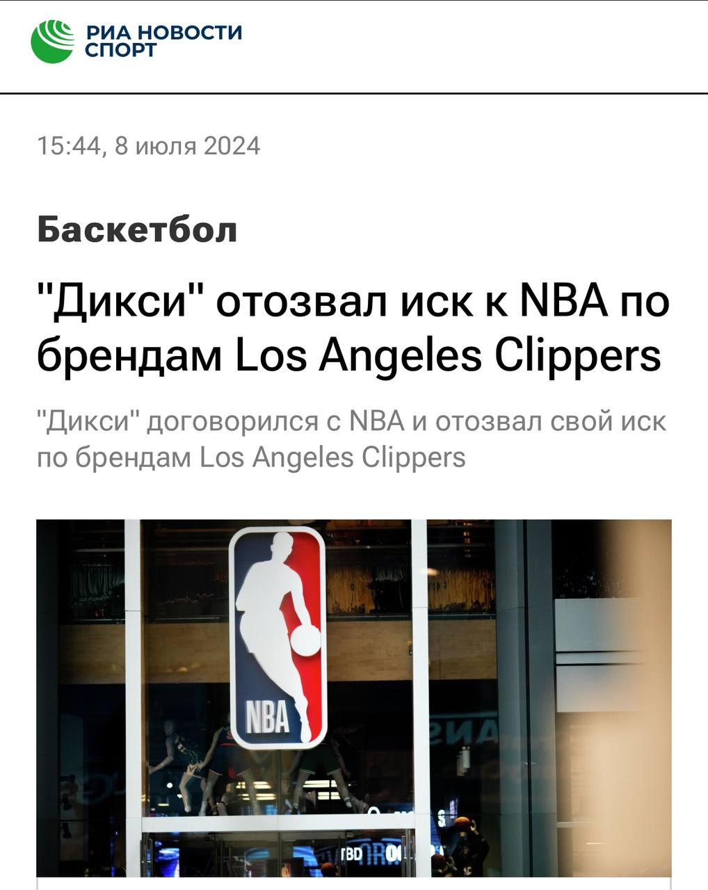 😮 Вестник нашего шапито. Оказывается, ритейлер Дикси судился с NBA.