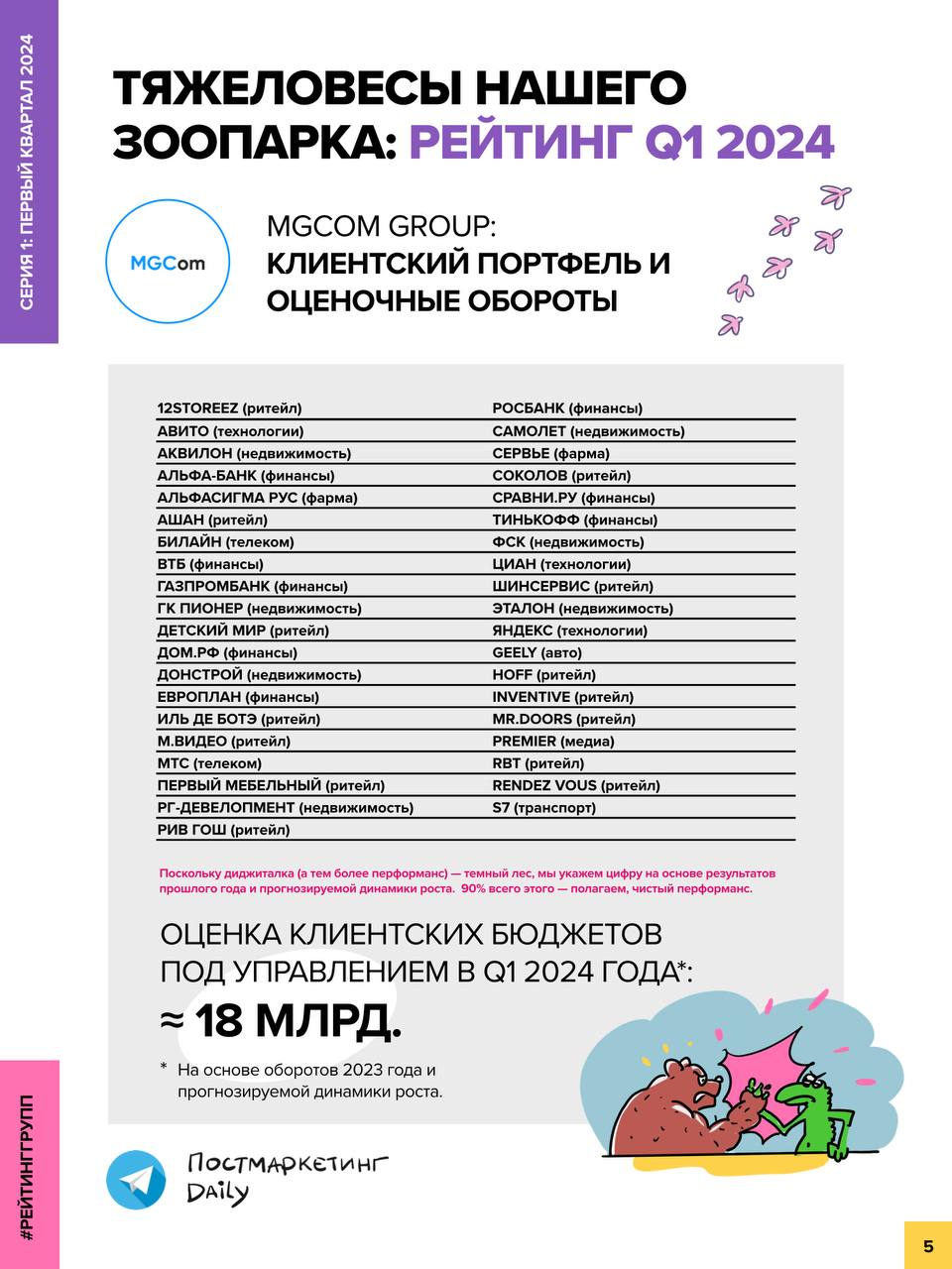 🤓 Внесены поправки в клиентский лист MGСom. Нам удалось добыть их свежее портфолио и даже верифицировать факт присутствия в нем отдельных клиентов.
