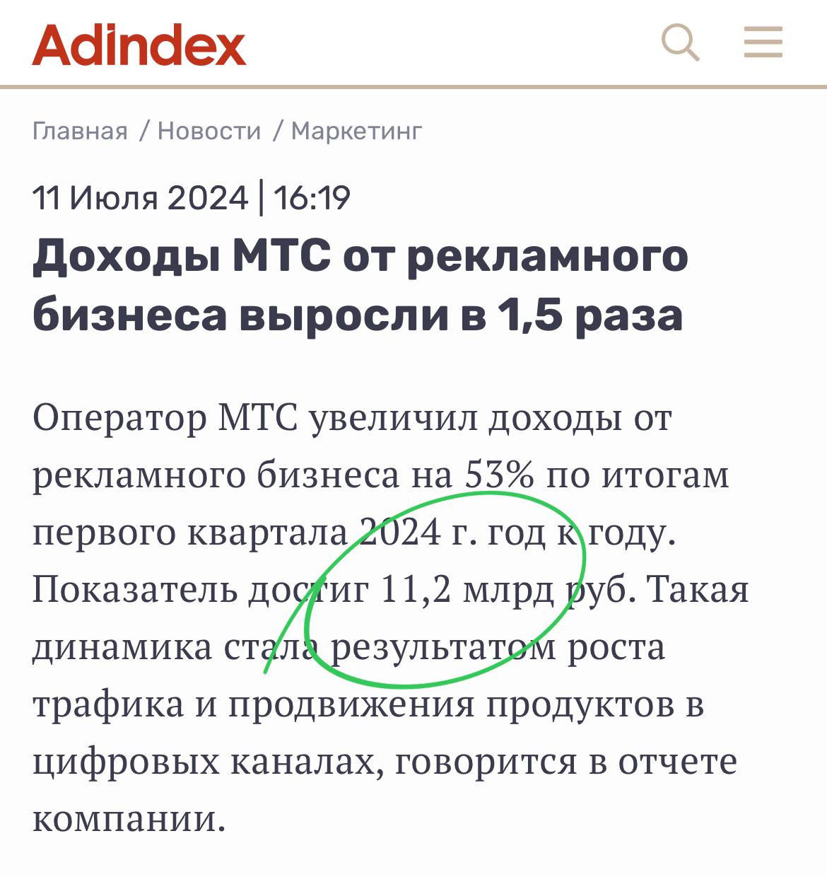 🤓 Если это кого-то интересует — МТС оценивает квартальный оборот от продажи рекламы в 11,2 ярда.