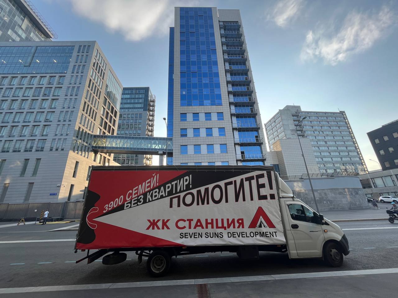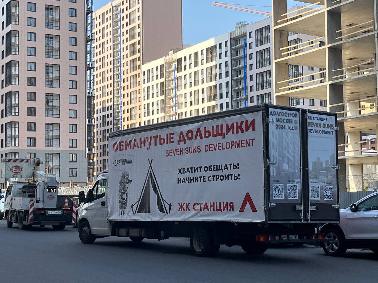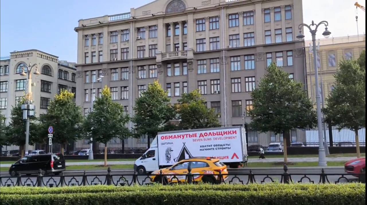 🤓 Транзитная реклама, как инструмент защиты справедливости со стороны обманутых дольщиков. Да, похоже, они опять появились в Москве.