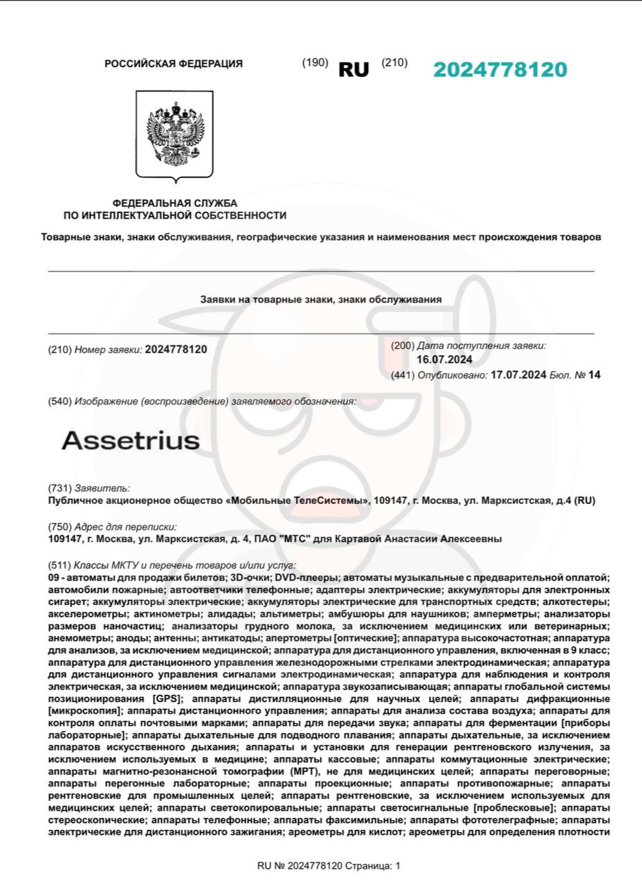 - МТС в лавине своих красных квадратиков регистрирует какой-то Assetrius. Судя по категориям регистрации — что-то связанное с медициной.