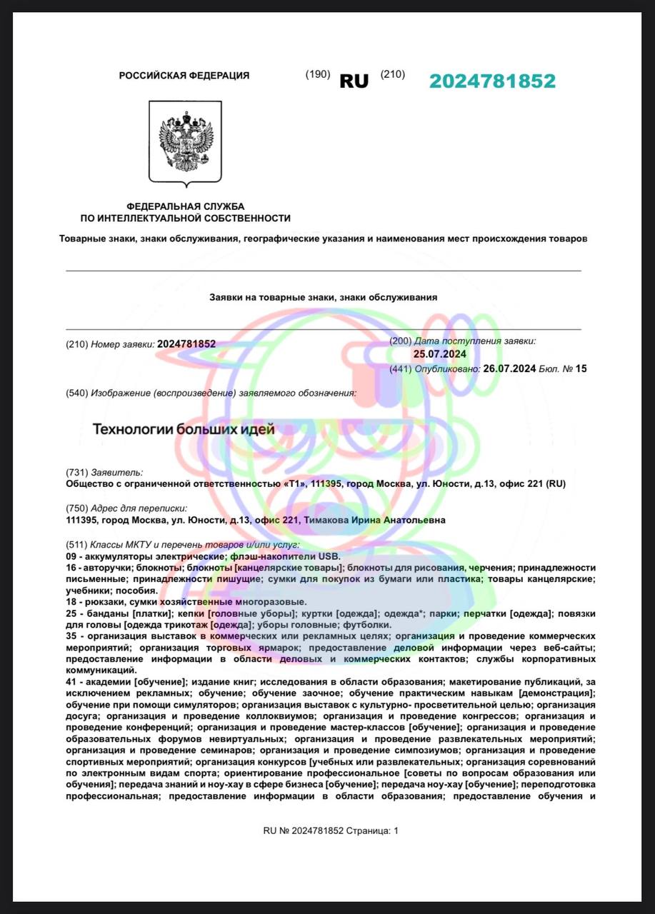 Компании Т1 (бывший Техносерв) кто-то продал «большую идею», в буквальном смысле. Устойчивую словоформу, как корпоративный фетиш. Теперь они ее регистрируют во всех приложениях, чтобы присвоить себе.