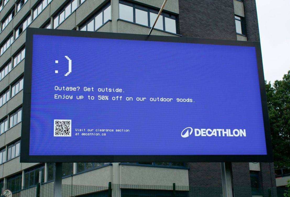 🤓 Декатлон ситуативно реагирует на глобальный сбой в мировой IT-шечке, который случился на прошлой неделе. Типа, отлипай от компа — выходи играть на улицу.