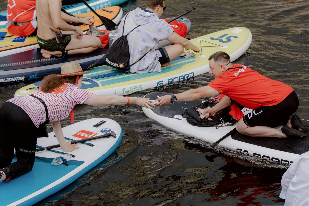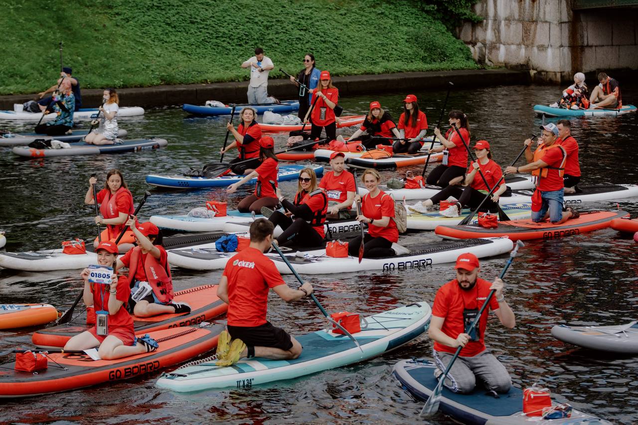 Через весь центр города по Фонтанке и Мойке гребли тысячи людей в разноцветных костюмах на своих досках. 44 сотрудника сети «О'КЕЙ» на сапах плыли вместе со всеми и щедро угощали участников вкусными батончиками собственного бренда. Неожиданный и приятный пример слаженной работы (и грамотного пиара).