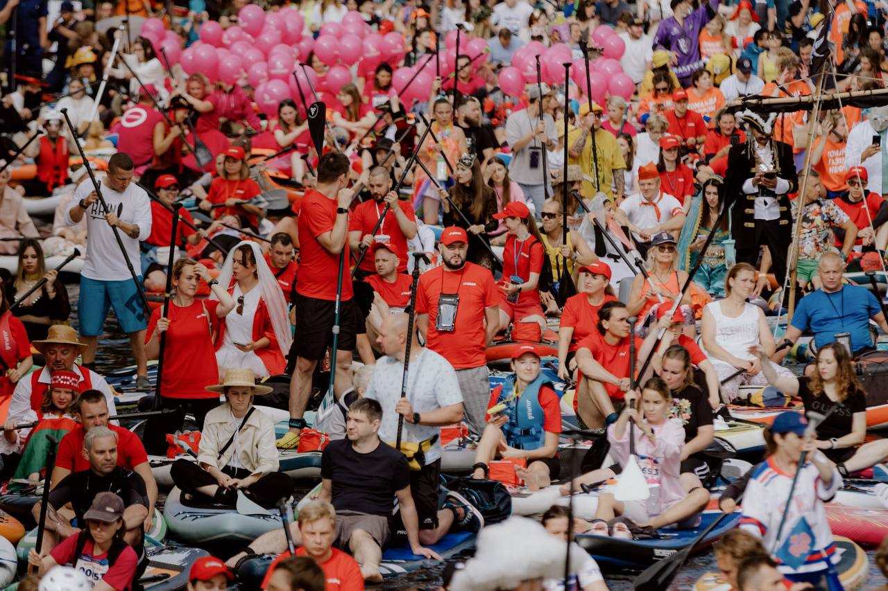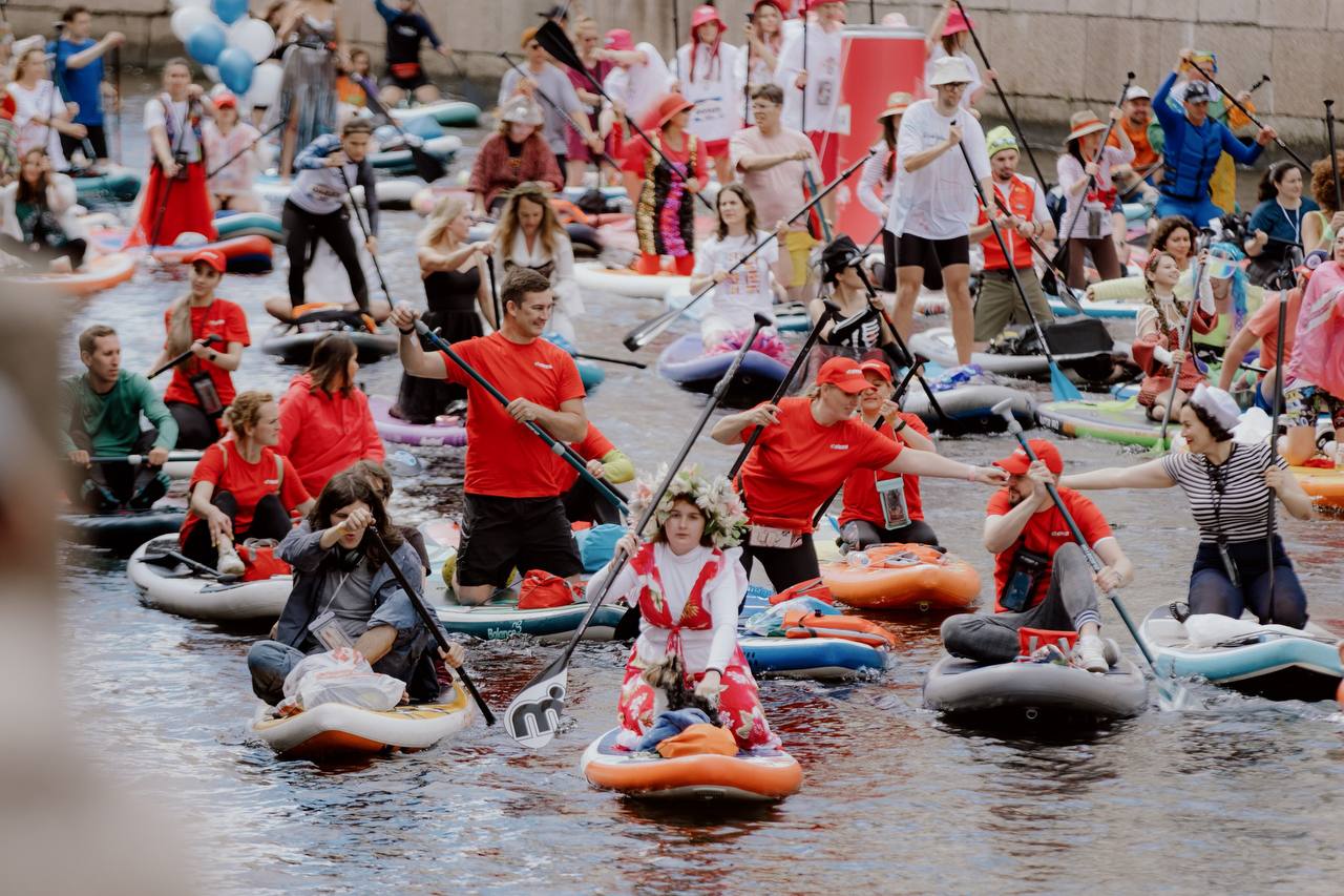 🤓 Питерский сплав на сапах — это что-то! На этот раз водная гладь городских каналов окрасилась в яркий красный цвет.