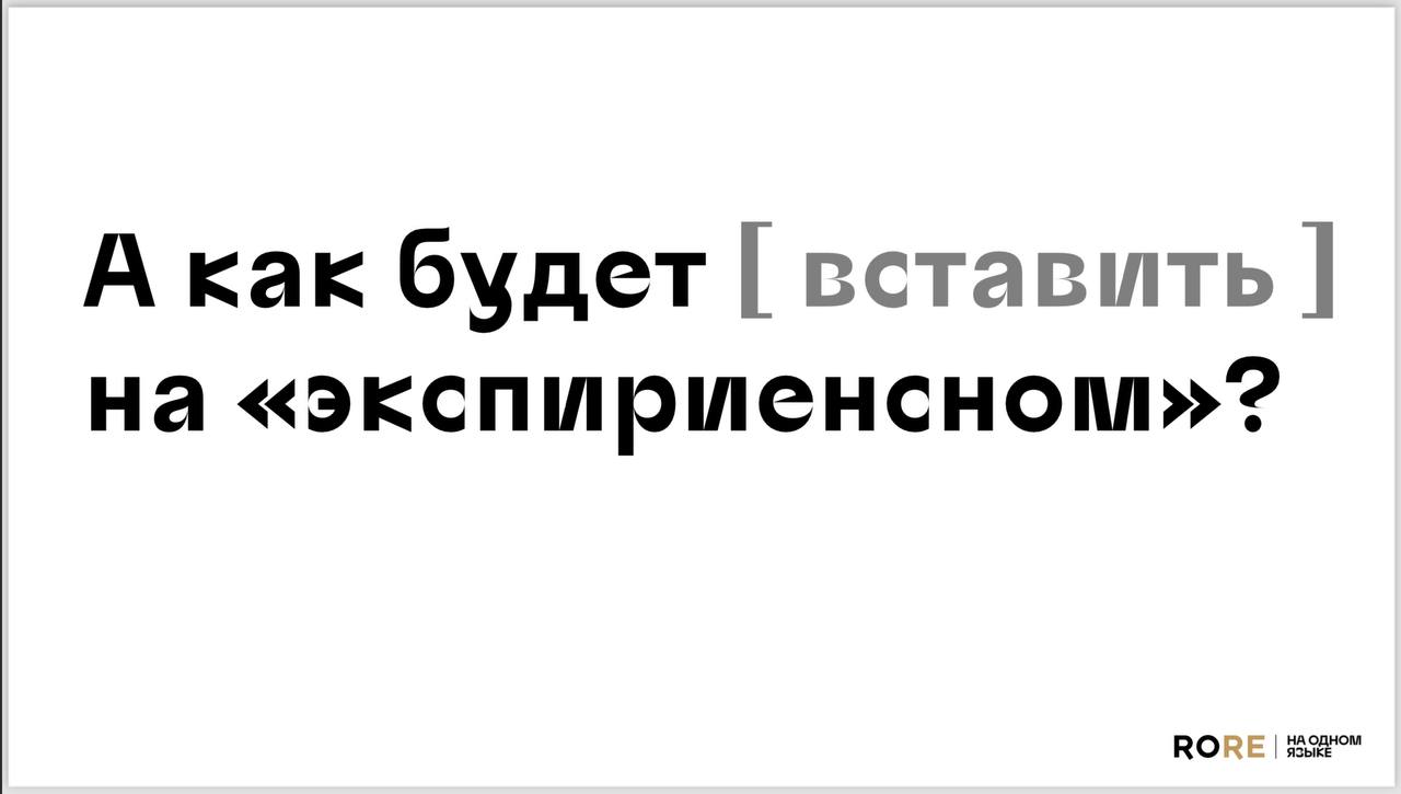 🤓 Как будет «вставить» на экспириенсном — спрашивает нас Родная речь в финале презентации со своего визионерского мероприятия.
