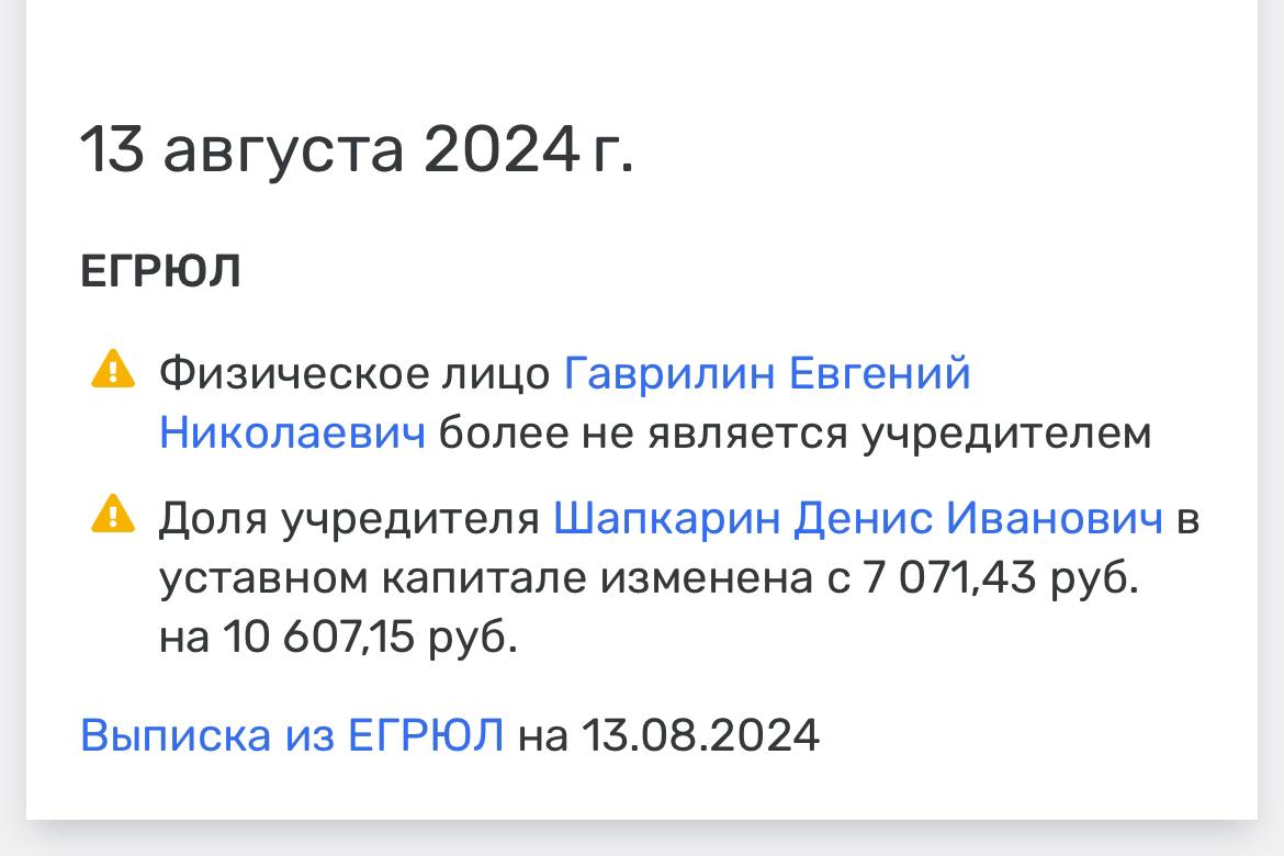 🤓 Новости внутренних перекидок групп и агентств. Евгений Гаврилин вышел из состава учредителей Нектарин Технолоджез.