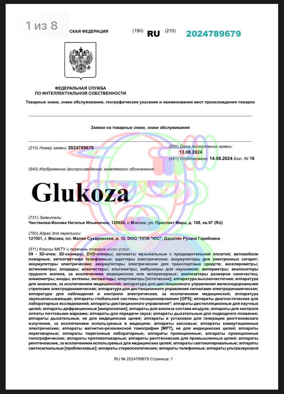 🤓 Исполнитель работающий под псевдонимом Глюкоза подал на регистрацию соответствующий товарный знак.