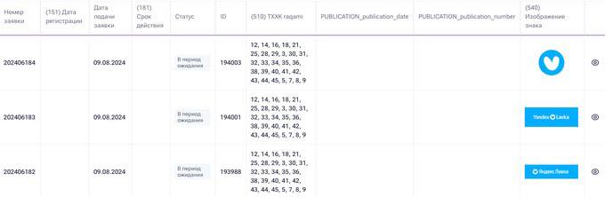 9 августа в Министерстве юстиции были зарегистрированы четыре заявки Yandex, которые сейчас находятся «в периоде ожидания». Тип знаков — комбинированный с транслитерациями «ИЗ ЛАВКИ» (IZ LAVKI) и «Яндекс Лавка» (Yandex Lavka). В качестве цветов выбраны белый и голубой.