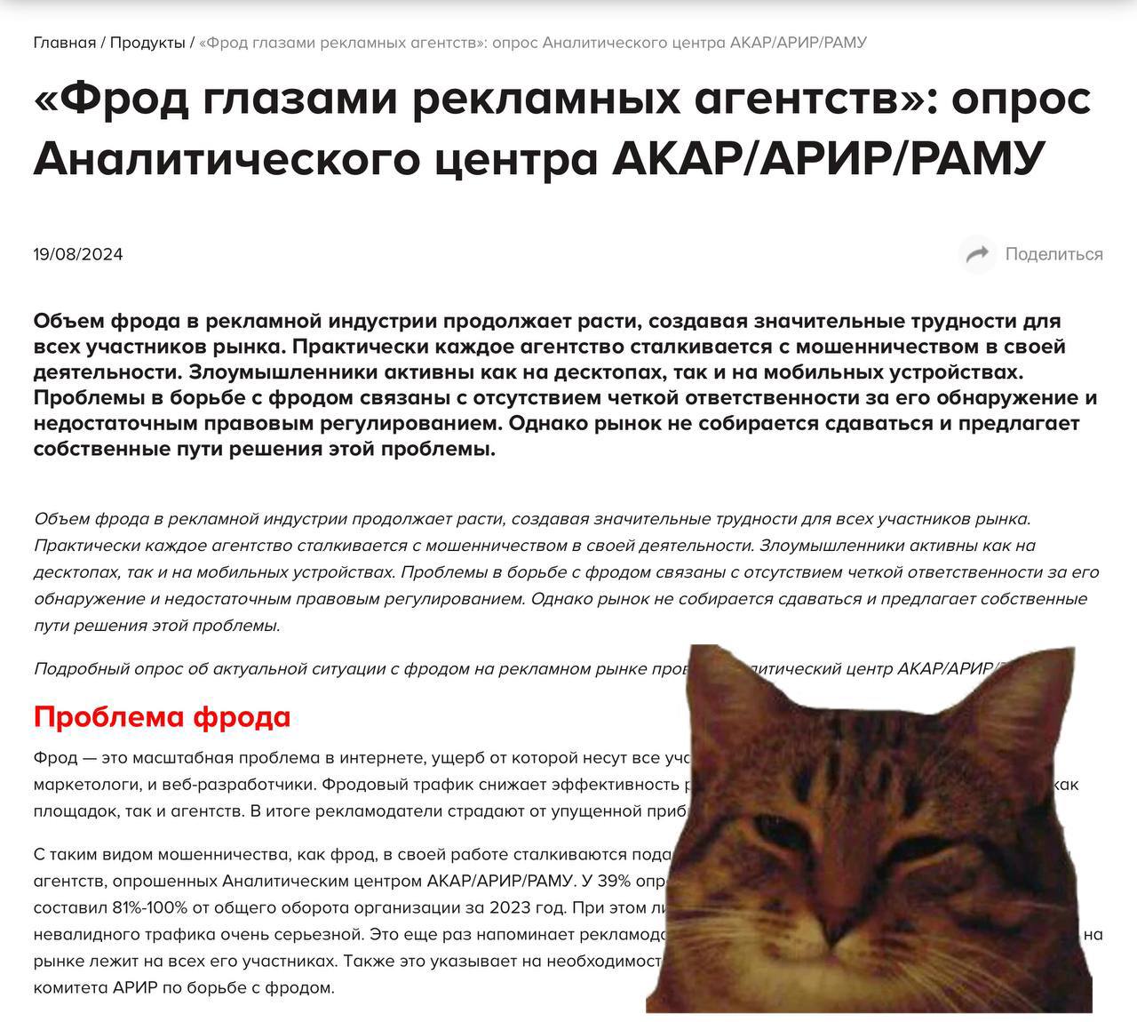 Пару дней назад триединый союз АКАР/АРИР/РАМУ выкатил опрос «Фрод глазами рекламных агентств». Зачем они это делают и в чем сущность явления? Давайте проанализируем все факторы и предысторию.
