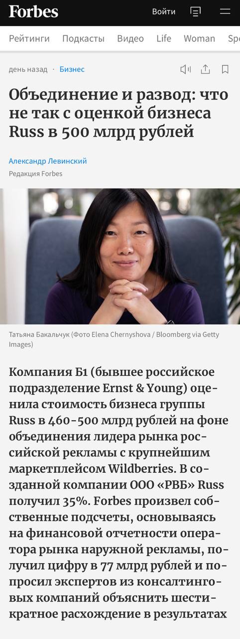 😮 Внезапно Форпс пересчитал оценку стоимости бизнеса RUSS, наскоро данную аудиторами Б1 (бывшие Эрнст энд Янг) в ответ на справедливый вопрос общества — как может быть так, что «сильно меньшее поглощает очень большее».