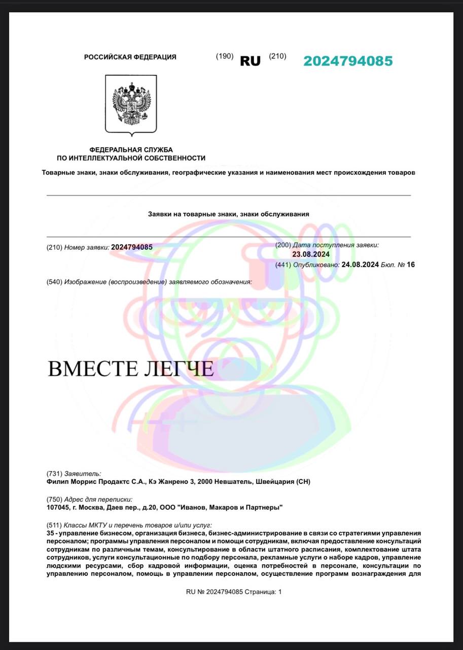 🤓 Филипп Моррис регистрирует слоган «Вместе легче».