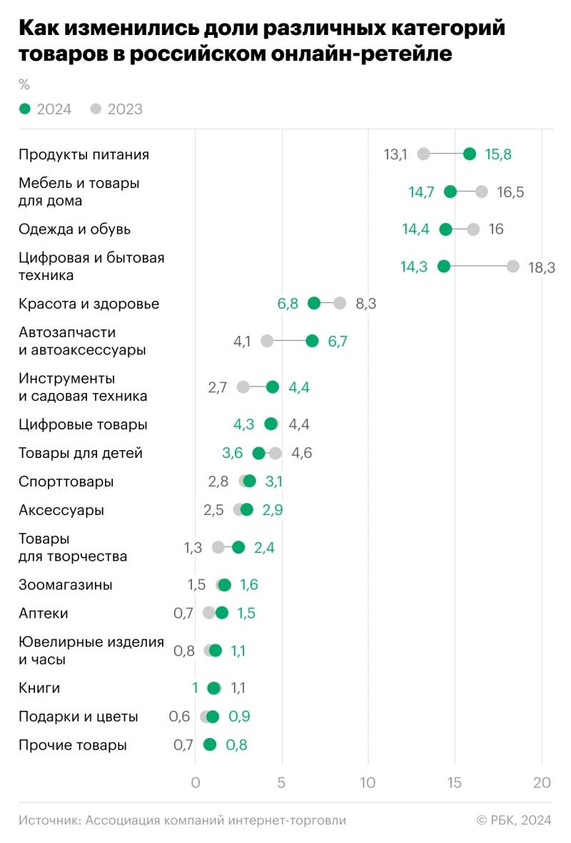 - Жрачка лучше всех растет в электронной торговле (по доле);