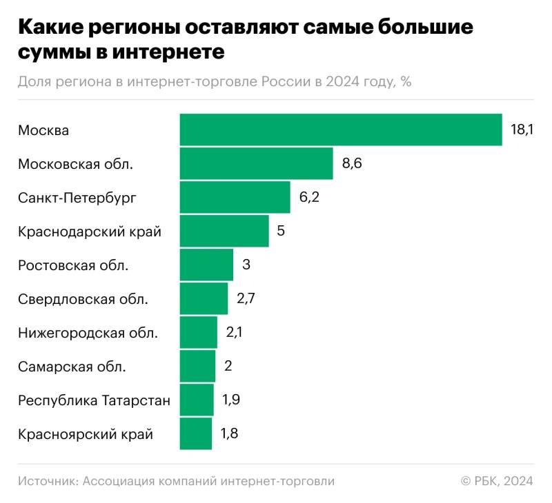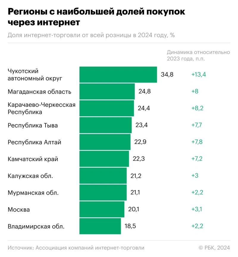 - Больше всего покупают в интернете в труднодоступных регионах;