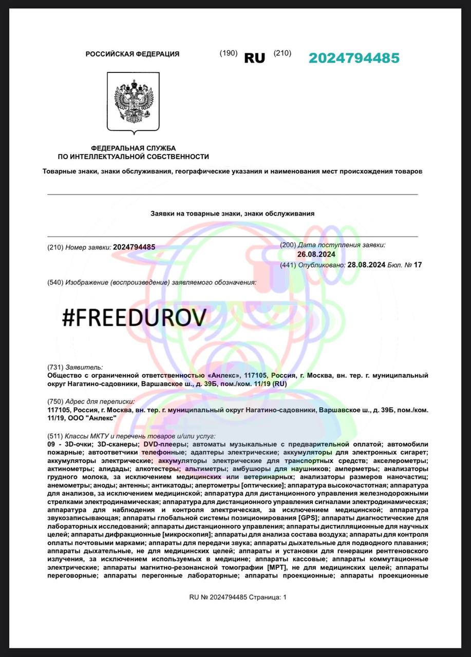 🤓 И еще о ситуативочках про арест Дурова. Малоизвестное ООО из Москвы оперативно регистрирует возникший пару дней назад тег «фридуров» для того чтобы кошмарить всех, кто планирует его использовать в коммерческих целях.